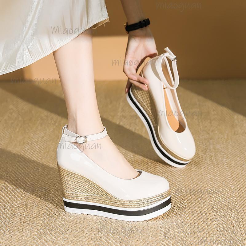 Dámské boty na klínu s kulatou špičkou, vysoký podpatek, platforma, univerzální lodičky, silná podrážka, dámské ležérní společenské boty, elegantní, De Mujer