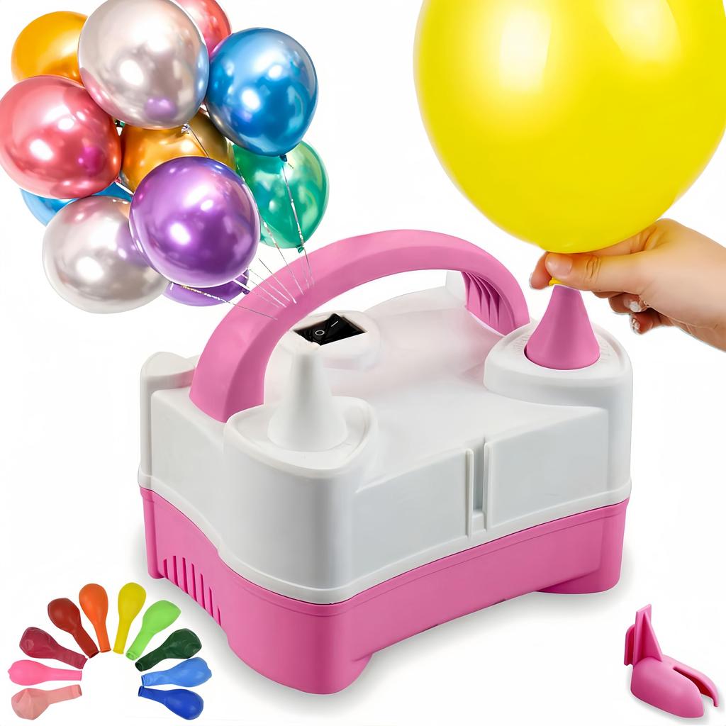 This electric balloon pump is a convenient pump that allows you to quickly inflate balloons. Its double-nozzle design allows for efficient operation and reduces setup time. Its compact, portable design makes it ideal for a variety of occasions, including birthday parties, children's parties, school events, and event venues. Even beginners can easily operate it, making it safe for first-time balloon decorators. This electric balloon pump is versatile and suitable for a wide range of uses, from home use to events.