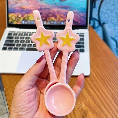 Hvězdičková keramická lžička Růžová kouzelná dívka Srdce Dezertní kávová lžička Kreslená rýžová lžička