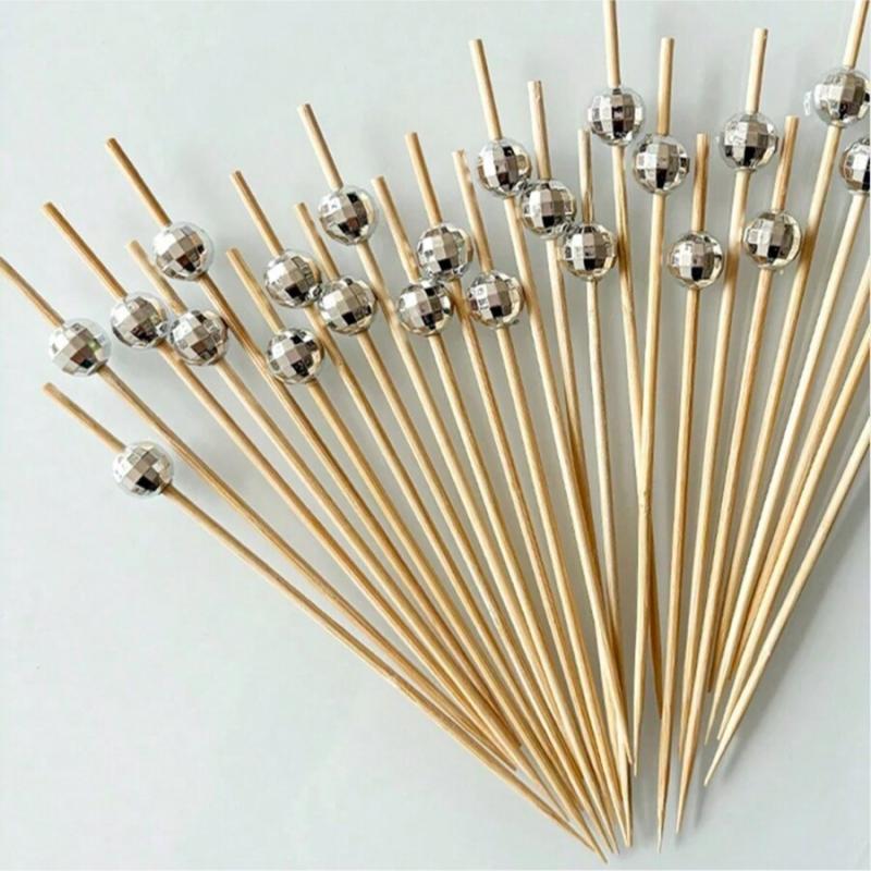 100pcs Disco Ball Fruit Sticks Earth Mirror Cocktail Sticks 12cmDessert Buffet Salad Fork Cocktail Decor Cake Buffet Toothpicks