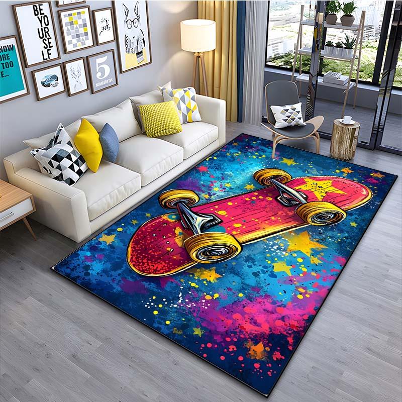 Drawing Ideas Colorful Skateboard Patter Carpet for Living Room Bedroom Bedside Bathroom Floor Mat Area Rug Sofa Mat Home Decor