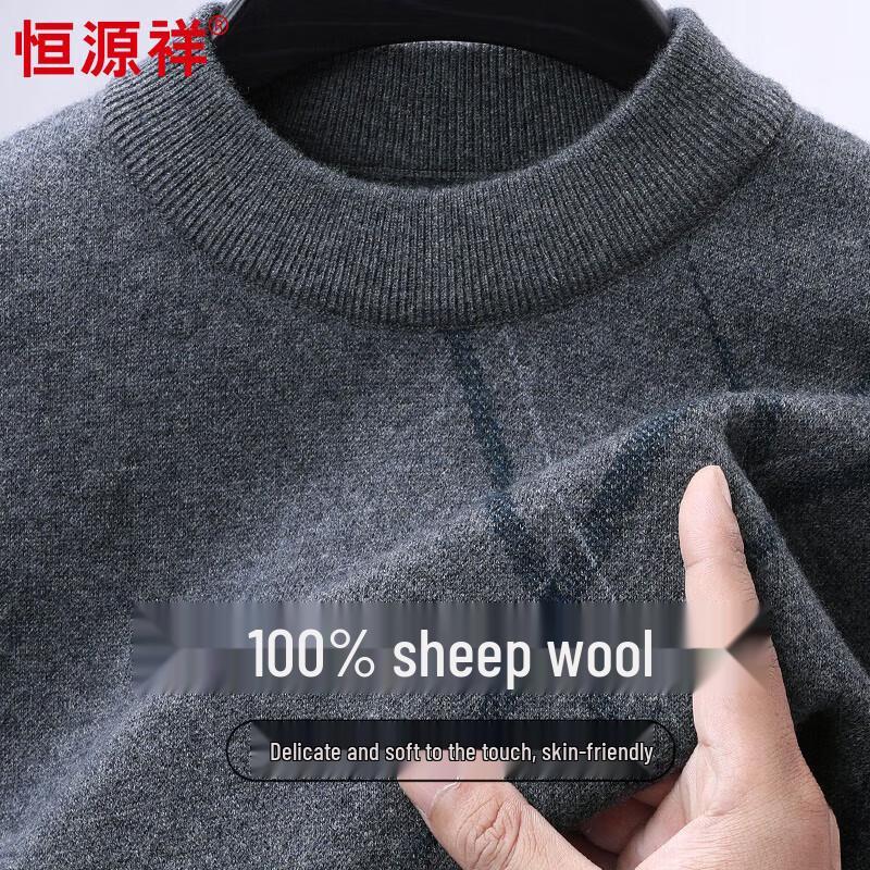 Hengyuanxiang Men's 100% Wool Half-High Collar Sweater