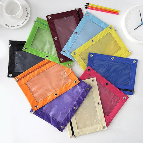 3kroužkový pořadač Barevný látkový pořadač Kapsa s průhledným okénkem Velkokapacitní pouzdro na tužky pro školní a kancelářské potřeby