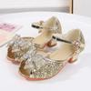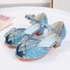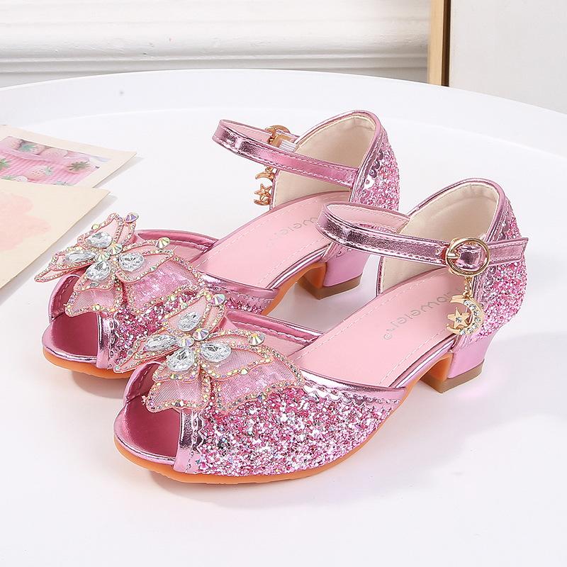 Girls Sandals High Heels Summer Children's Rhinestones Shiny Bow Princess Shoes Little Girl Fish Mouth Aisha Classmate