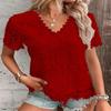 BITCED Women's Fashion Casual Solid Color Print Short Sleeve V Neck Blouses & Shirts