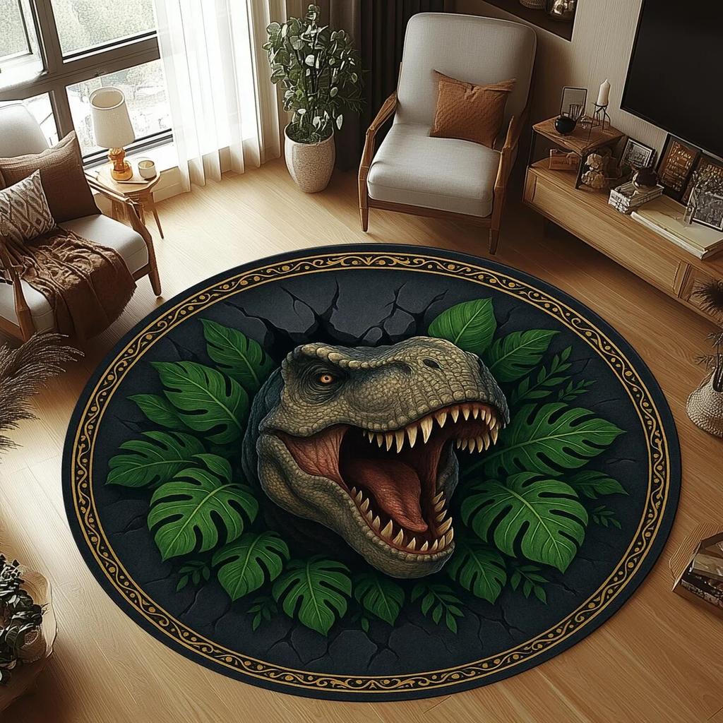 Dinosaur Round Area Rug for Living Room, Bedroom, and Play Area Rug Machine Washable Carpet for Camping, Porch, Outdoor Doormat