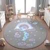 Roztomilý kulatý koberec s potiskem králíčka pro dětský pokoj Protiskluzový omyvatelný koberec pro domácí obývací pokoj Kulatá podložka na podlahu
