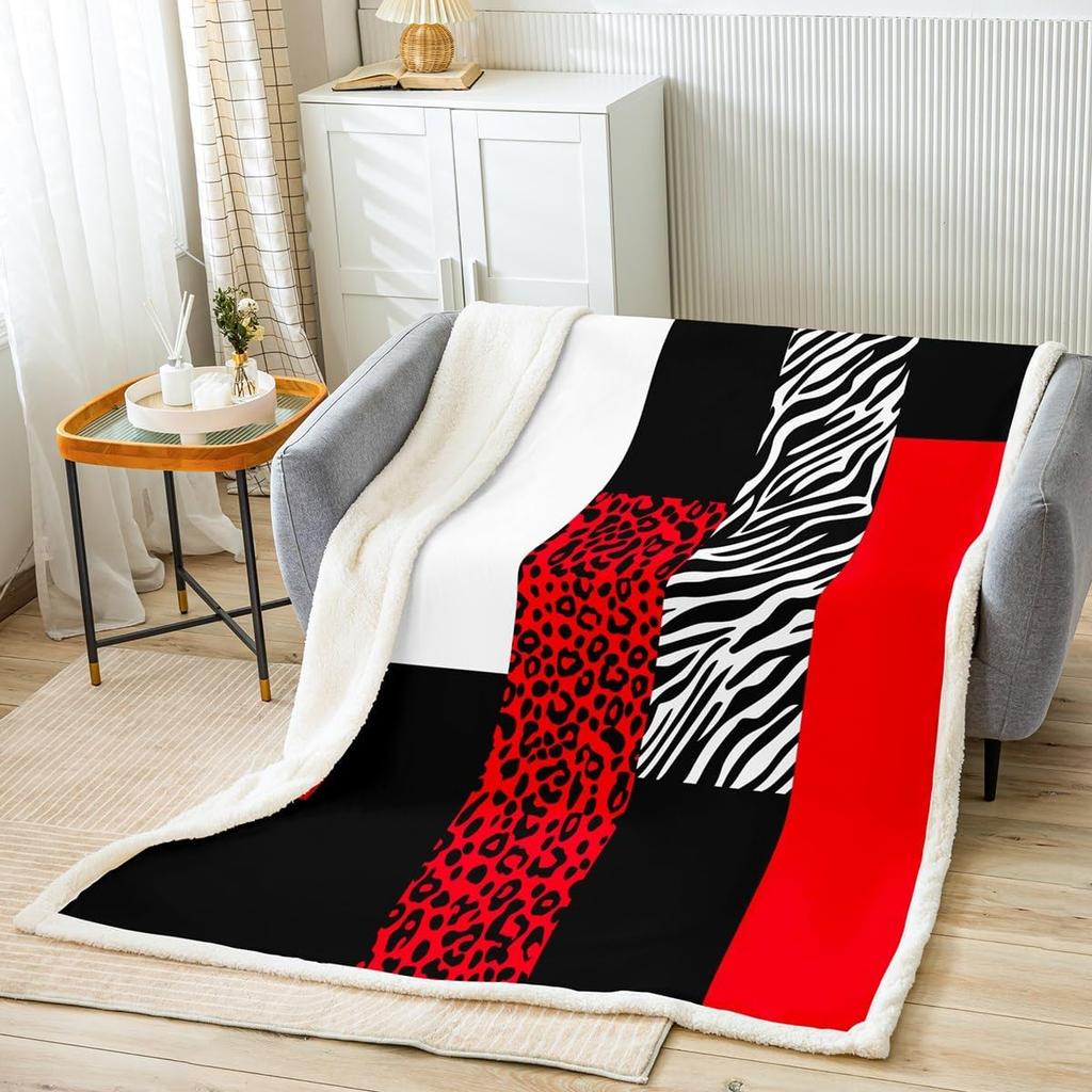 Red leopard zebra print blanket bold animal pattern soft throw modern home decor stylish bedroom bedding fashion design textile