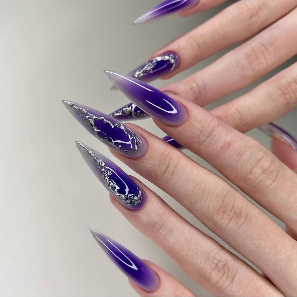 Fialový flek nosící kus nehtu Evropský a americký zakázkový manikúra falešný nehet nosící kus hotový produkt