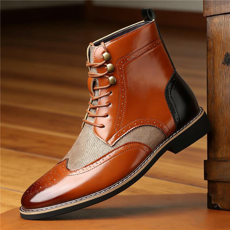 Luxury Designer New Men Pointed Mixed Leather Motorcycle Casual Oxford Ankle Boot Male Brand Winter High Tops Shoes