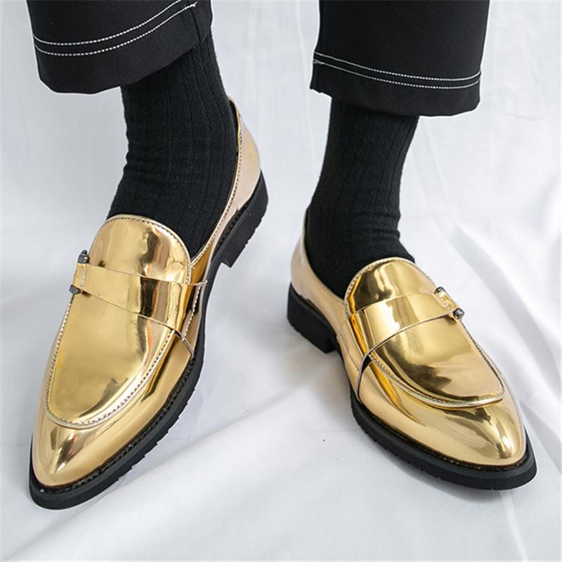 Gold Green White Pointed Patent Leather Casual Shoes For Men Brand Designer Monk Strap Loafers Wedding Dress Homecoming Footwear