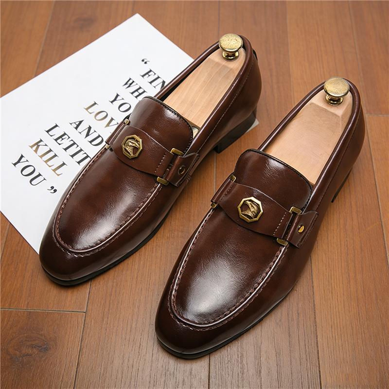 British Fashion Gentleman Pointed Metal Badge Loafers Shoes Men Formal Wedding Prom Dress Homecoming Pageant Zapatillas Hombre