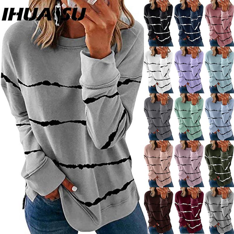 IHUASU Dámská móda Ležérní Blůzy a košile s dlouhým rukávem a kulatým výstřihem