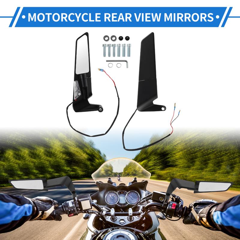 Motoforti 1 Set Motorcycle Rear View Mirrors Dual Sport Mirror Universal Adjustable Aluminum Alloy Black M8/M10 Polygonal Shape