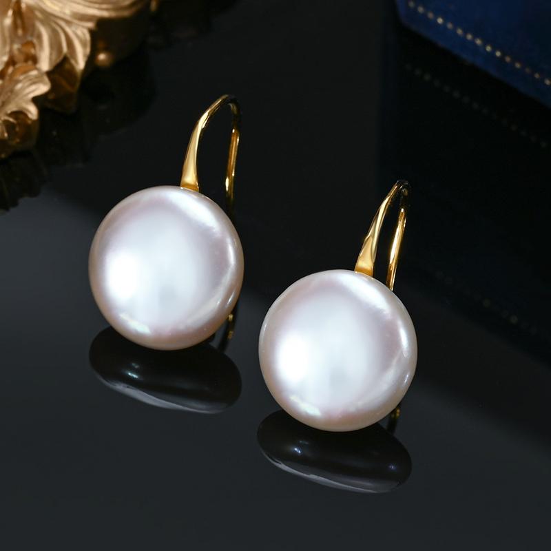 Baroque Button Natural Freshwater Pearl Ear Spoon Style Earrings 925 Silver Fashion Classic Elegant Gifts for Women