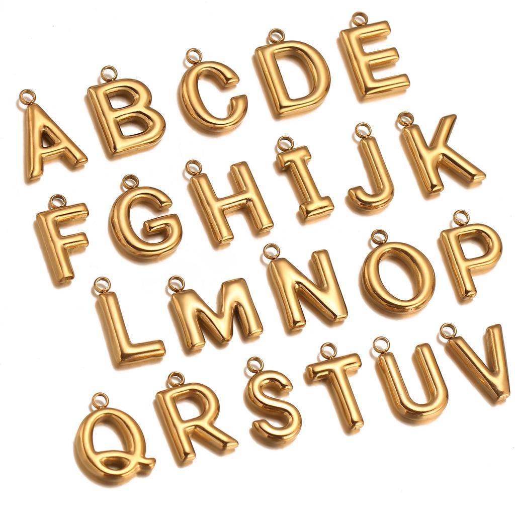 3Pcs Initial Charms 3D Stainless Steel English Letter Pendant 18K Gold Color PVD Plated Bubble Alphabet Charm DIY Jewelry Making