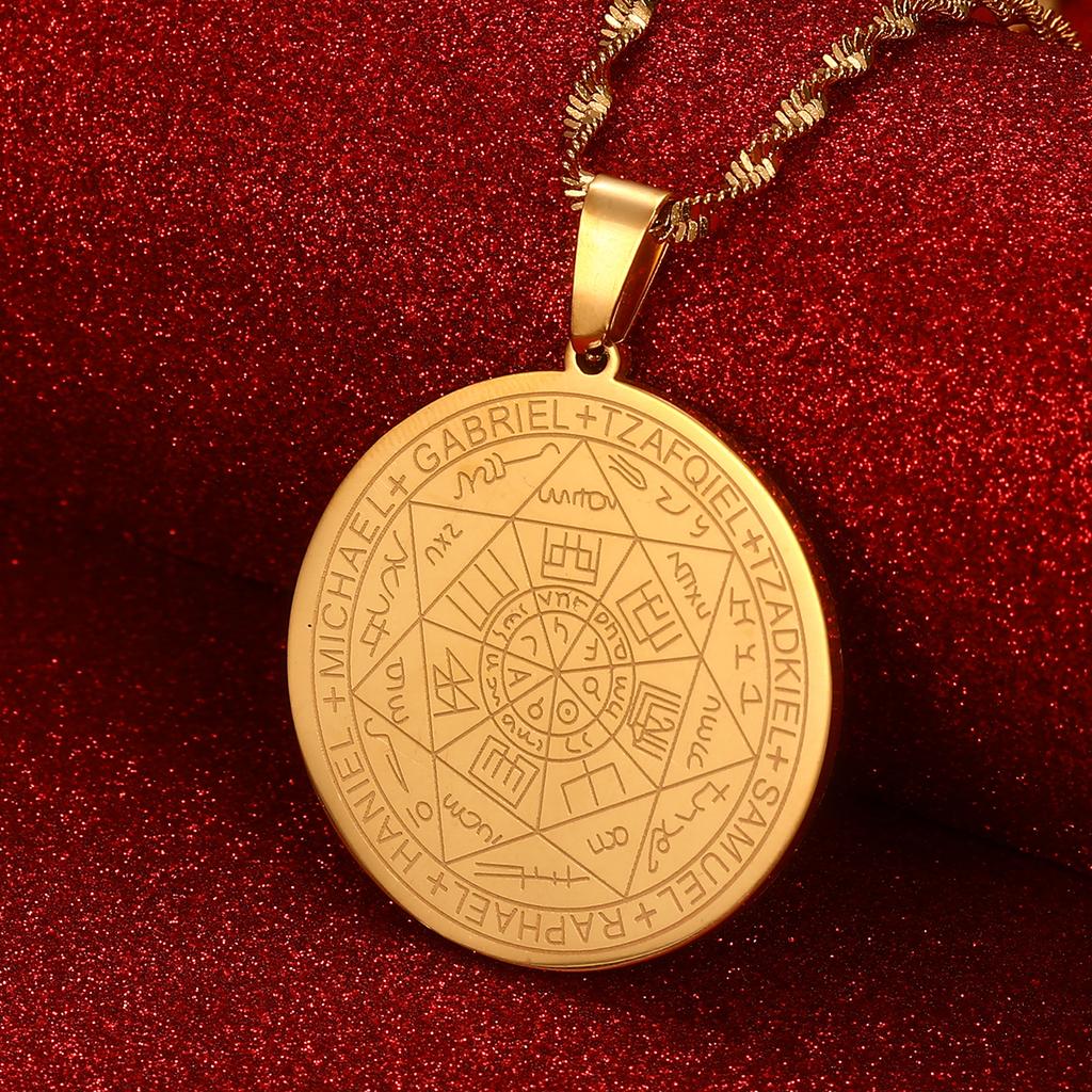 Seven Archangels Amulet Stainless Steel Necklaces Men Seal of Solomon Talisman Necklace Protection Jewelry collar