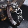 Klasický Zvířecí Severský Viking Dvojitá Vlčí Hlava 316L Nerezová Ocel Pánský Kožený Náramek Módní Punkové Šperky Pulseras
