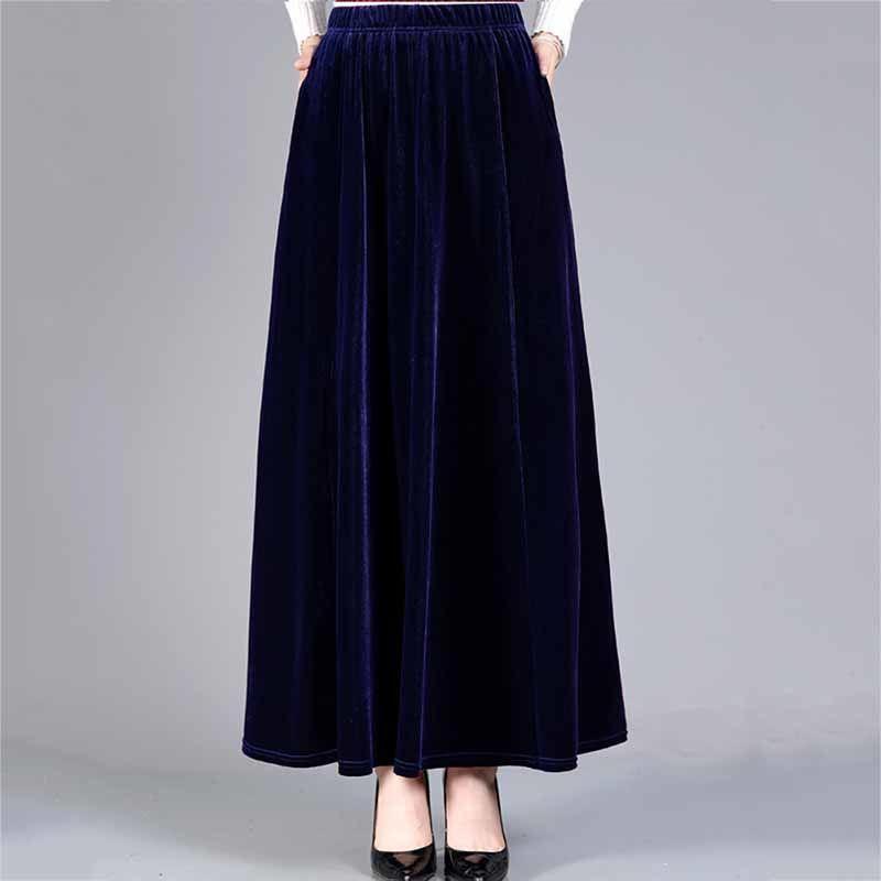 Zlatá sametová A-line dlouhá sukně nadměrné velikosti - S vysokým pasem a univerzální dámská taneční sukně
