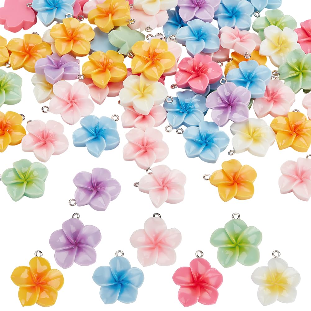 [Rich Colors] The plumeria flower charms come in six colors (dark pink, light pink, blue, green, purple, and orange). The vibrant colors are refreshing and perfect for decorating a summer or spring sea-themed party.