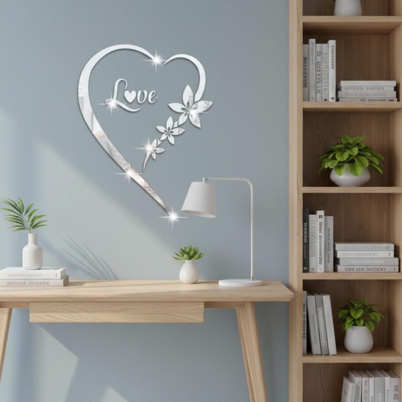 Self-Adhesive 3D Heart-Shaped Mirror Wall Decal Acrylic Heart-Shaped Reflective Sticker Living Room Background Decorative Decal