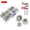 110pcs/Box Flange Nut Hex Hexagon Serrated Spinlock Lock Nut Set Mix Size M3 M4 M5 M6 M8 Assortment Kit Stainless Steel