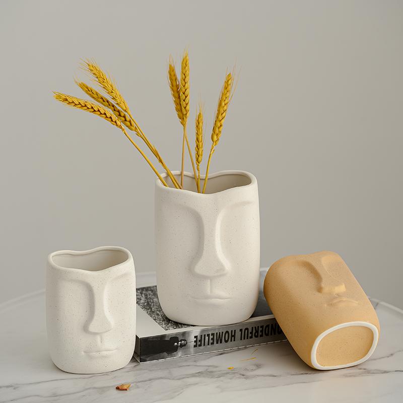 Creative Ceramic Face Vase Dried Flowers Plant Flower Pot Abstract Figure Head Vase Crafts Living Room Ornaments Home Decoration