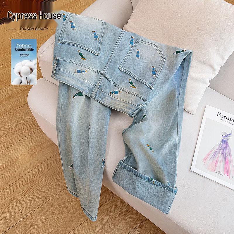 Women's Embroidered Draped Wide-Leg Washed Jeans