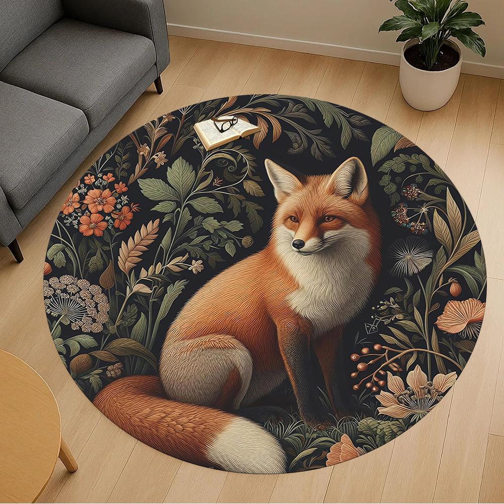 1pc fox floral Round Chair mat Area Rug - Non-Slip, Floor Mat for Office, Bedroom, and Indoor Decor c1118185
