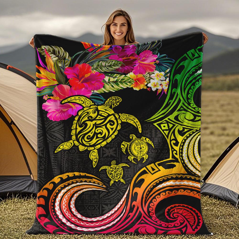 Turtle and Hibiscus Pattern Blanket for Sofa Bed Travel Camping Living Room Office Conditioning Blanket for All Seasons Gifts