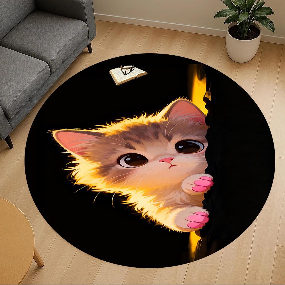 1pc Kitten Cute Round Chair mat office Area Rug - Non-Slip, Floor Mat for Office, Bedroom, and Indoor Decor p127025