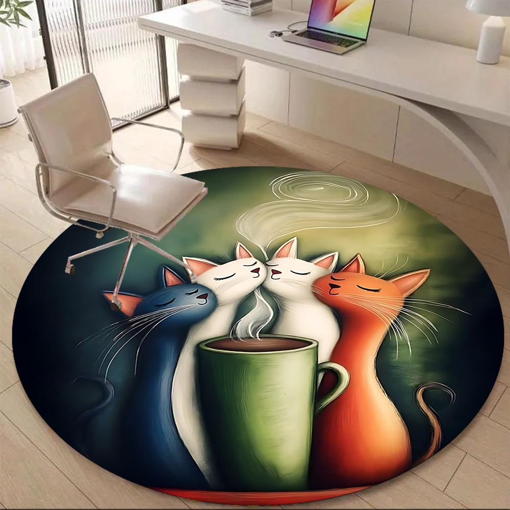 1pc Cats Coffee Office Round Area Rug, Indoor Mat Suitable ForOffice, Under Office Chairs Bedroom Living Room Home Decor, Room Deco D042