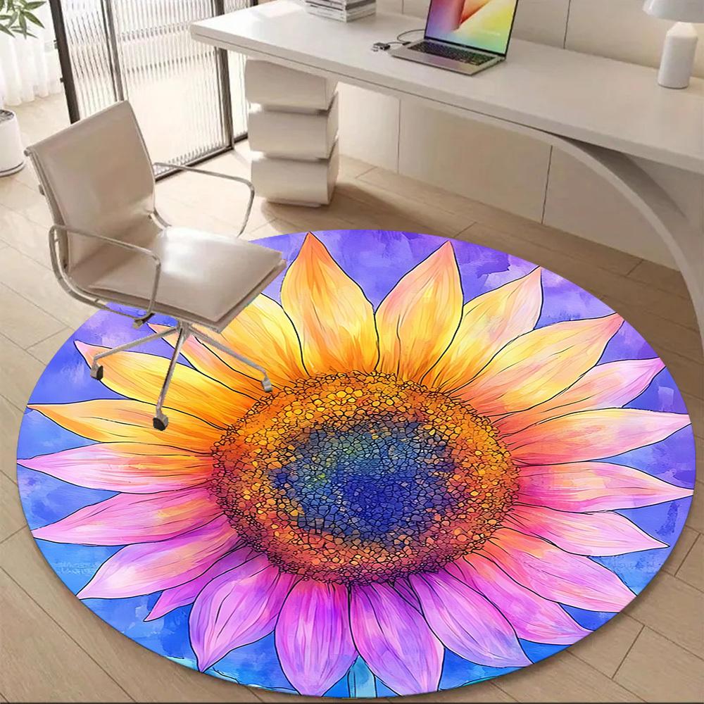 1pc Sunflower Bloom Office Round Area Rug, Indoor Mat Suitable ForOffice, Under Office Chairs Bedroom Living Room Home Decor D016