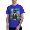 Black And White Cat Starry Night Print 100 Cotton Casual Breathable Confortable Men Top Mens Clothing Brands Men TShirt