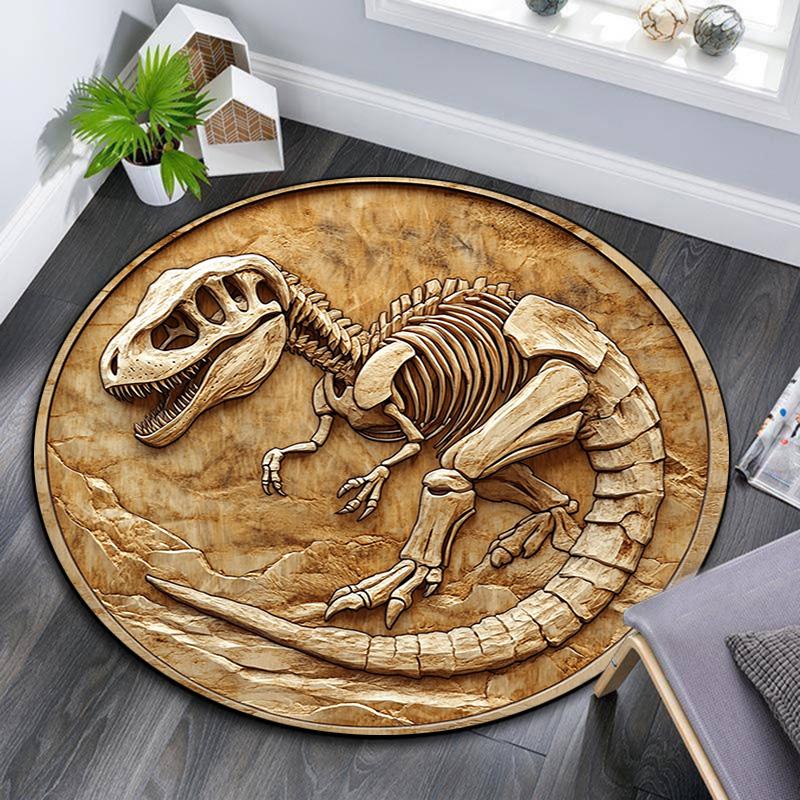 Dinosaur Fossil Relief Round Area Rug,Carpet Rug for Living Room Bedroom Sofa Playroom Decor,Non-slip Floor Mat