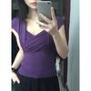 Dámský letní crop top s křížením, zavinovací, výstřih do V, krátký rukáv, úzký, ležérní, párty halenka