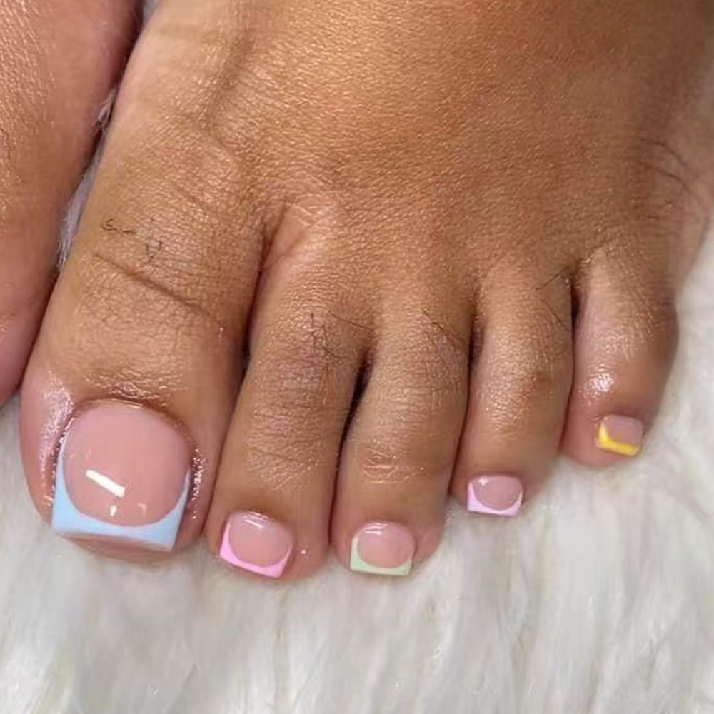 24 new toenail patches, European and American spice girls, color French short square round wearing nail pads