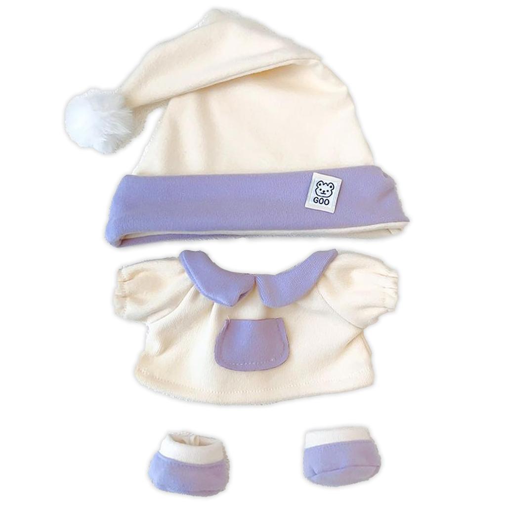 Purple Pajama Set and for 10cm Plush Kigurumi Otaku Doll Kpopdoll Costume (Hat, Dress, Shoes) Doll, Accessories, Activities, Mascot, [Used]
