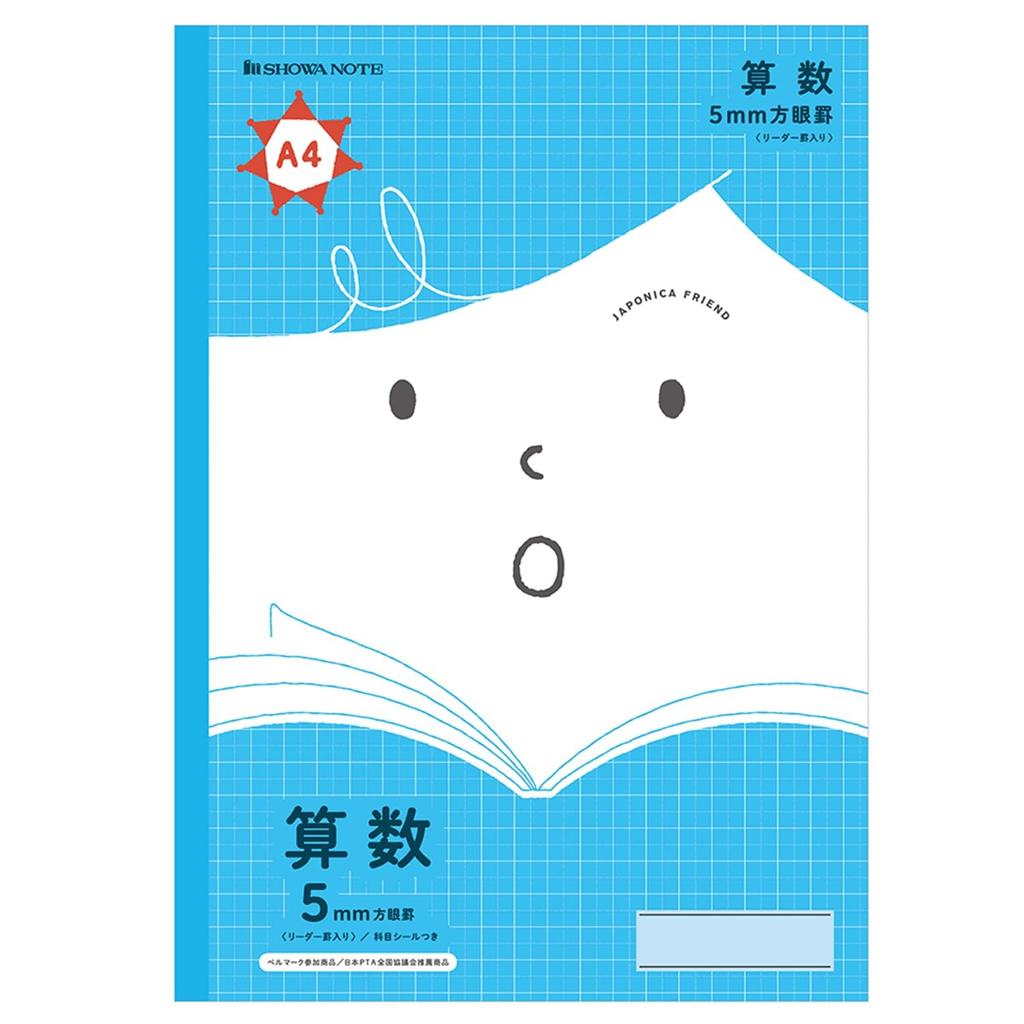 Showa Note Japonica Friend Math 5mm Grid A4 Notebook, (with +Leader), Size, 5-Pack, Blue, 0780205005