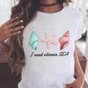 (Asian Size) Women's Top Print O-neck butterfly trend Short Sleeve T-shirts Fashion Female Casual T Clothing Graphic Tee