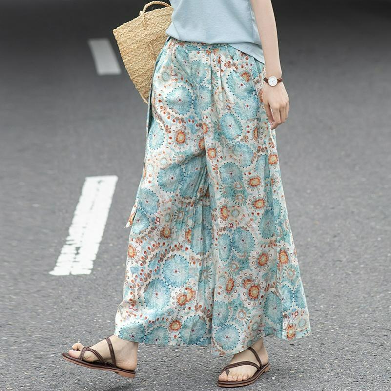 Summer Literary Retro Printing Loose Wide-leg Pants Nine-point Casual Culottes Women