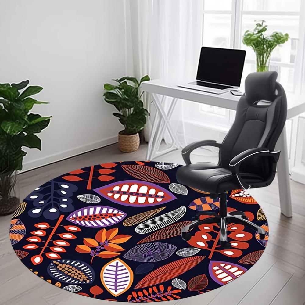 1pc Leaf Pattern Office Round Area Rug, Mat Suitable For Office, Under Office Chairs Bedroom Living Room Home Decor, Room Deco