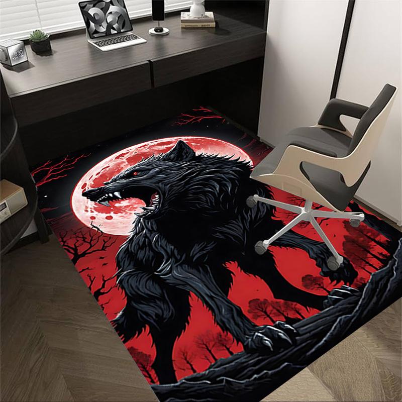 1pc Wolf Howling Moon Carpet Anti Slip Polyester Floor Mat for office.Bedroom