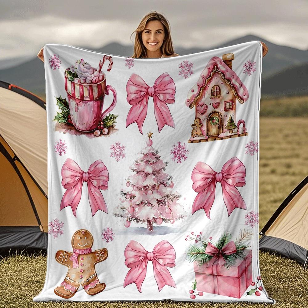 Christmas-themed pattern Blanket for Sofa Bed Travel Camping Living Room Office Conditioning Blanket for All Seasons Gifts