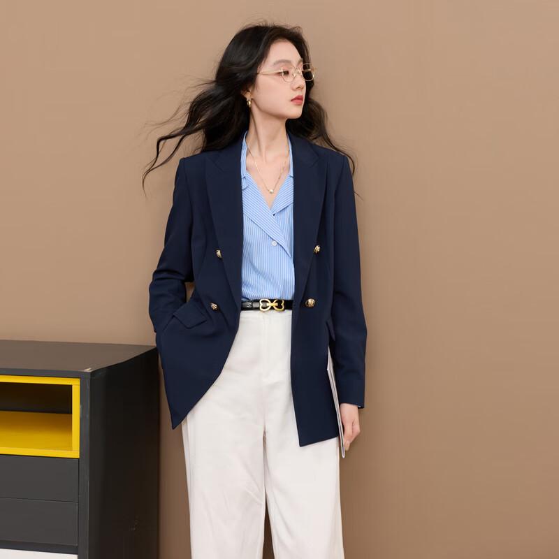 Sancai 2025 Podzimní neformální dvouřadový sako s páskem