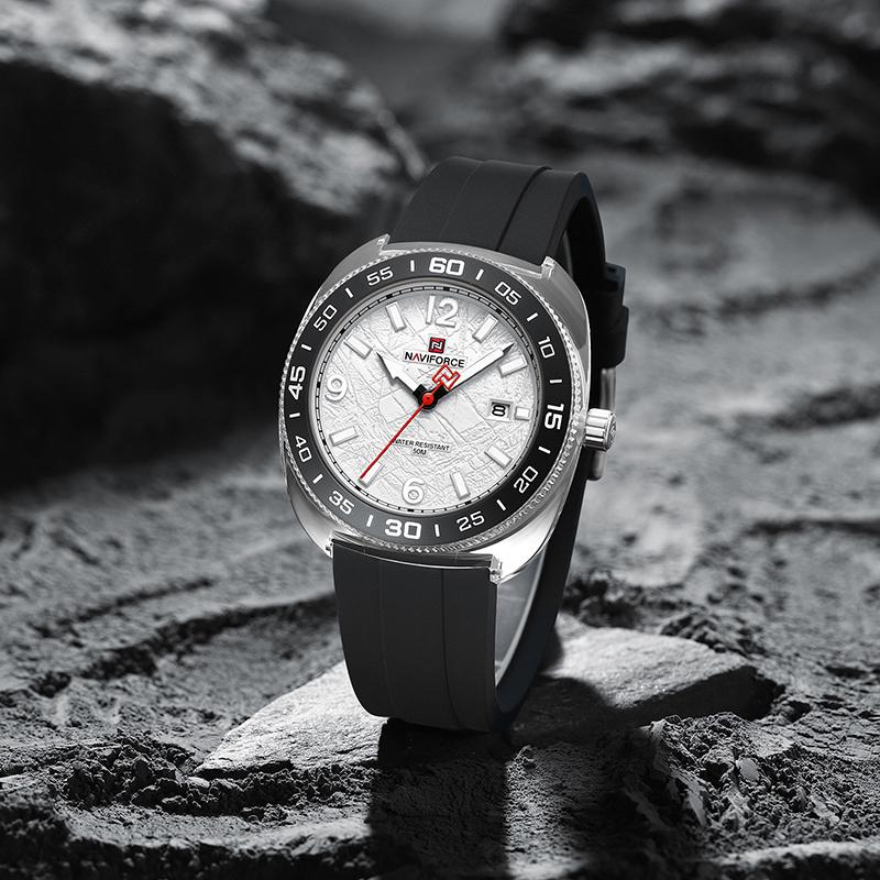 NAVIFORCE Original Men Calendar Watch Quartz Movement Round Case Luminous Pointer 50m Waterproof Silicone Strap Men Casual Watch NF7132