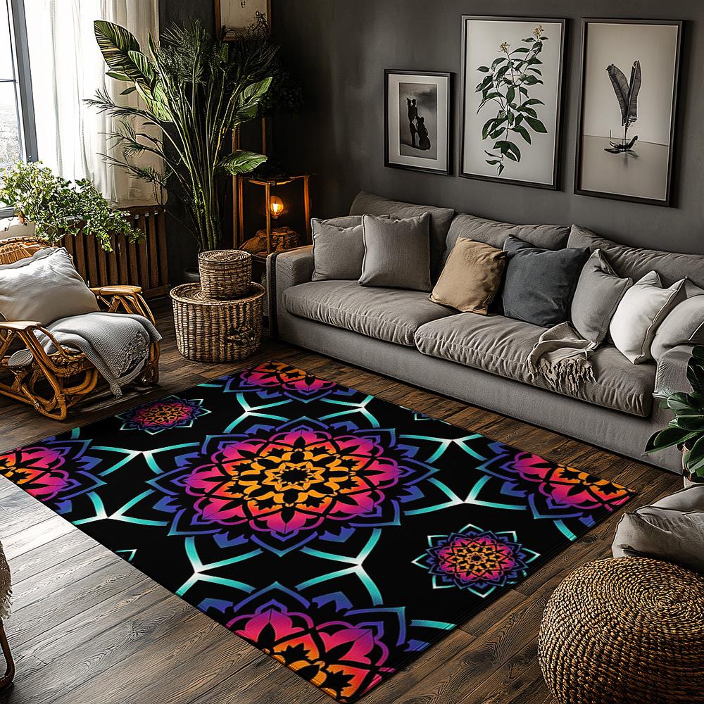 Unique Mandala Area Rug Bohemian Floor Mat Home Decor Living Room Bedroom Carpet Non Slip Washable Abstract Pattern Artistic Des