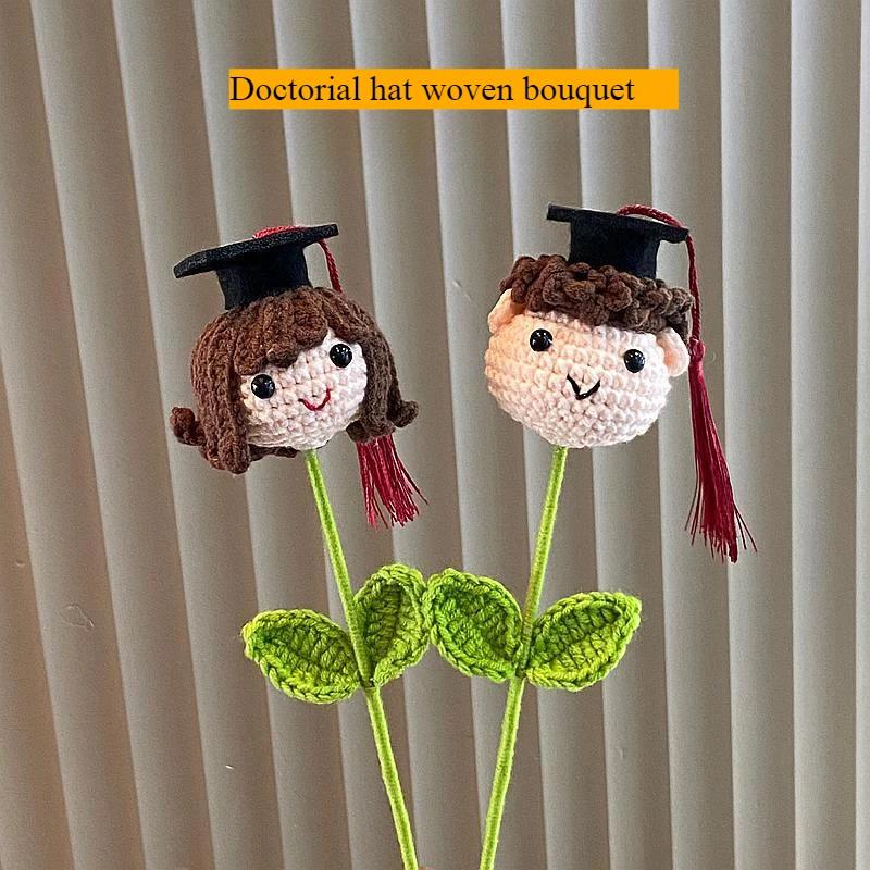 DIY Hand-crocheted PhD Cap Graduation Season Boys Girls Flower Bouquet Hand-made Decor School Finished Flower Bouquet Gift