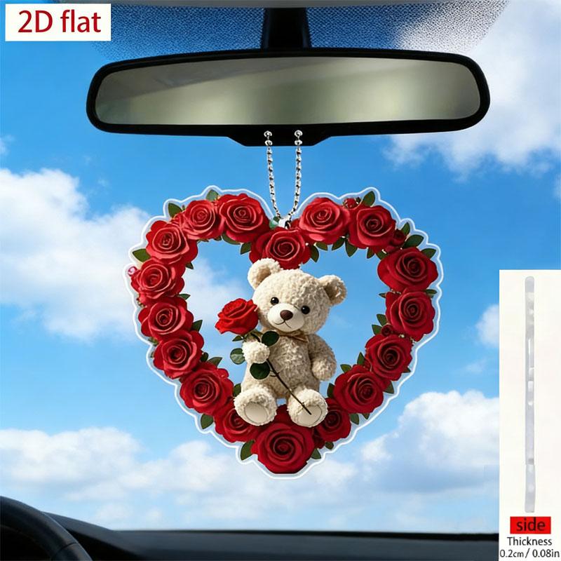 2D Acrylic Car Pendant Valentine's Gift Cute Hanging Ornament Romantic Rearview Mirror Decor Car Interior Accessories for Lovers