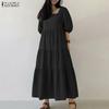 ZANZEA Women Casual Round Neck Loose Lace Splice Long Sleeve Blouse
